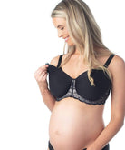 Designed for the fuller bust, the ultimate t-shirt nursing bra with a flexible underwire. A seriously sensual and supportive contour cup made with engineered spacer foam. Smooth under clothing with the flat lace panelling and smooth, soft microfibre. Flexible underwire offers a higher level of support and expands and flexes with your body reducing pressure on the breast tissue. The centrepiece can be removed if you have any concerns.