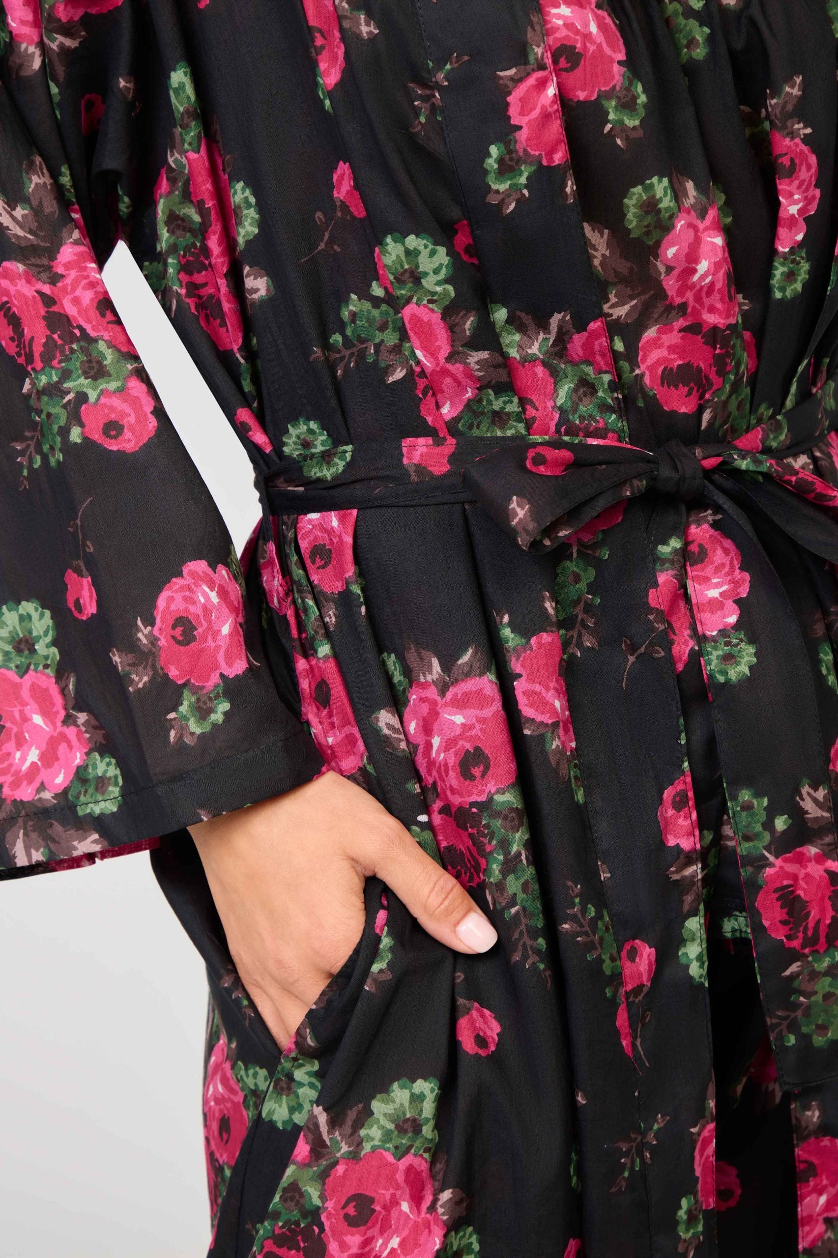 Arabella Dressing Gown/Robe Black / Pink Flowers