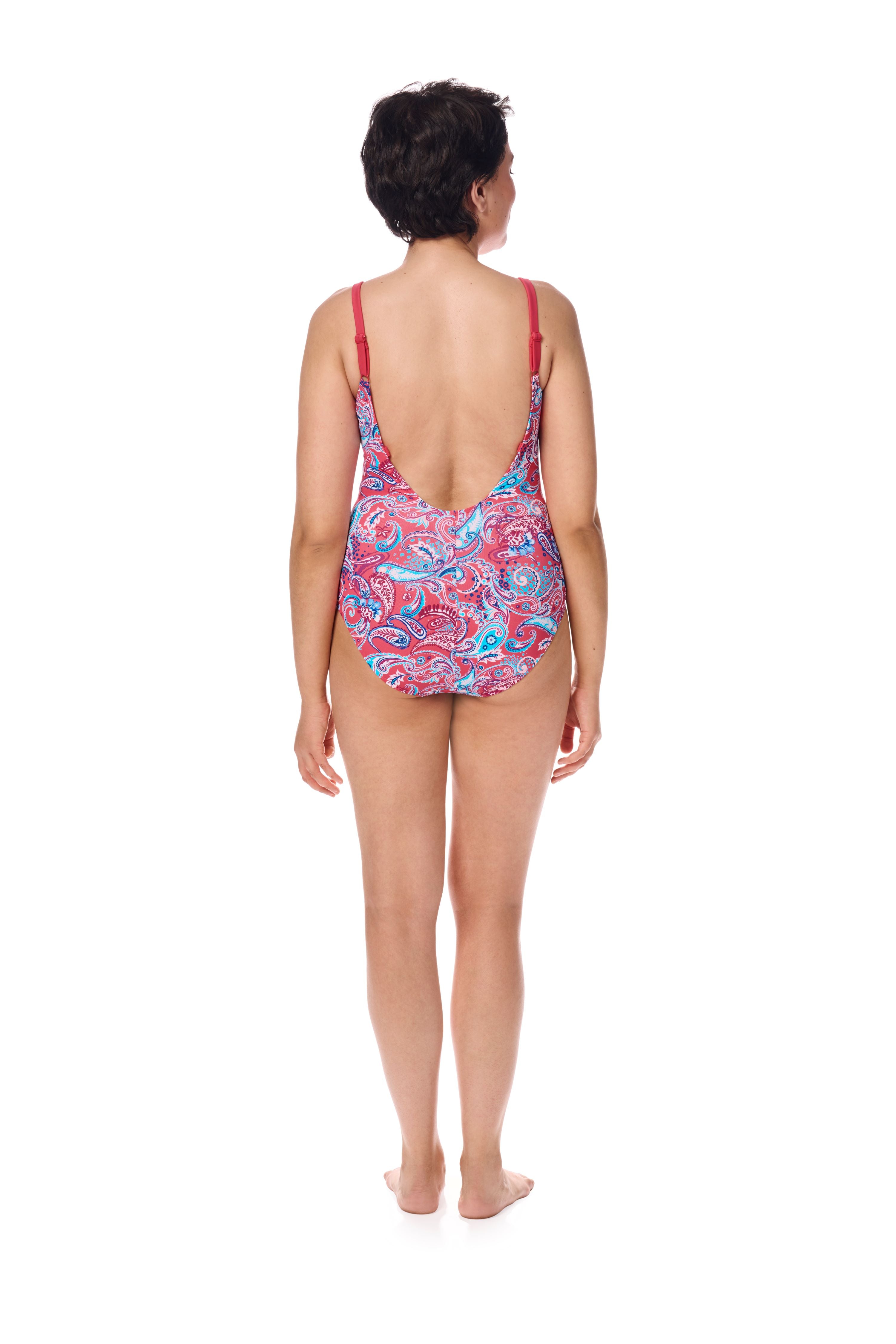 Make a splash with the Barbados swimwear line by Amoena, where every piece embodies a perfect blend of style, comfort, and practicality. Featuring a captivating hand-painted paisley pattern in refreshing pink and blue hues, this collection promises to turn heads on the beach or by the pool. Crafted from ultra-soft microfibre fabric, each swimsuit offers unparalleled comfort while boasting excellent UV protection (UPF 50+) — ideal for sensitive skin and scars. Engineered with LYCRA® XTRA LIFE™ technology, these swimsuits ensure a long-lasting fit, shape retention, and superior chlorine resistance, guaranteeing durability and longevity. Plus, the innovative Amoena Wave Seam Technology provides additional support at the sides for Amoena full and partial prostheses/Aqua Wave, offering both style and support with every wear.