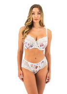 Introducing Fantasie Pippa White Short. Adorned with delicate pink and peach roses on a white background, this exclusive floral design brings a touch of summer to your wardrobe. Crisp white lace adds a beautiful touch. Don't miss out on this unapologetically beautiful piece!